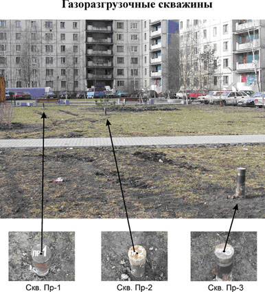 Проектирование и обустройство вентиляционных газо-разгрузочных скважин на выявленных участках с аномальными содержаниями биогаза в грунтах (рис.3). На основании имеющегося опыта показано, что установление систем разгрузки (газоотводных скважин, шурфов) является наиболее щадящим и экологически оправданным способом нейтрализации очагов скопления биогаза в грунтах в условиях крупного мегаполиса.