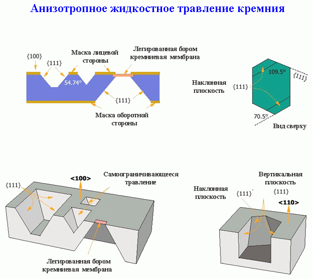 Рис. 5. Анизотропное жидкостное травление кремния |