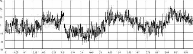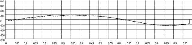 | Рис.п.1.6. График временной функция накопленной погрешности волновой зубчатой передачи при вращении входного вала по часовой стрелке.