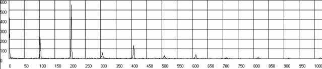 | Рис.п.1.7. График спектра кинематической погрешности волновой зубчатой передачи при вращении входного вала по часовой стрелке с разрешением по частоте 1*1.
