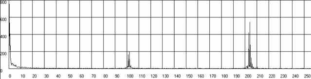 | Рис.п.1.8. График спектра Кинематической погрешности волновой зубчатой передачи при вращении входного вала по часовой стрелке с разрешением по частоте 1*4.