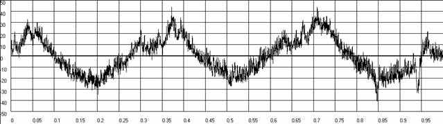 | Рис.П.1.5. График Временной функция кинематической погрешности волновой зубчатой передачи при вращении входного вала по часовой стрелке.