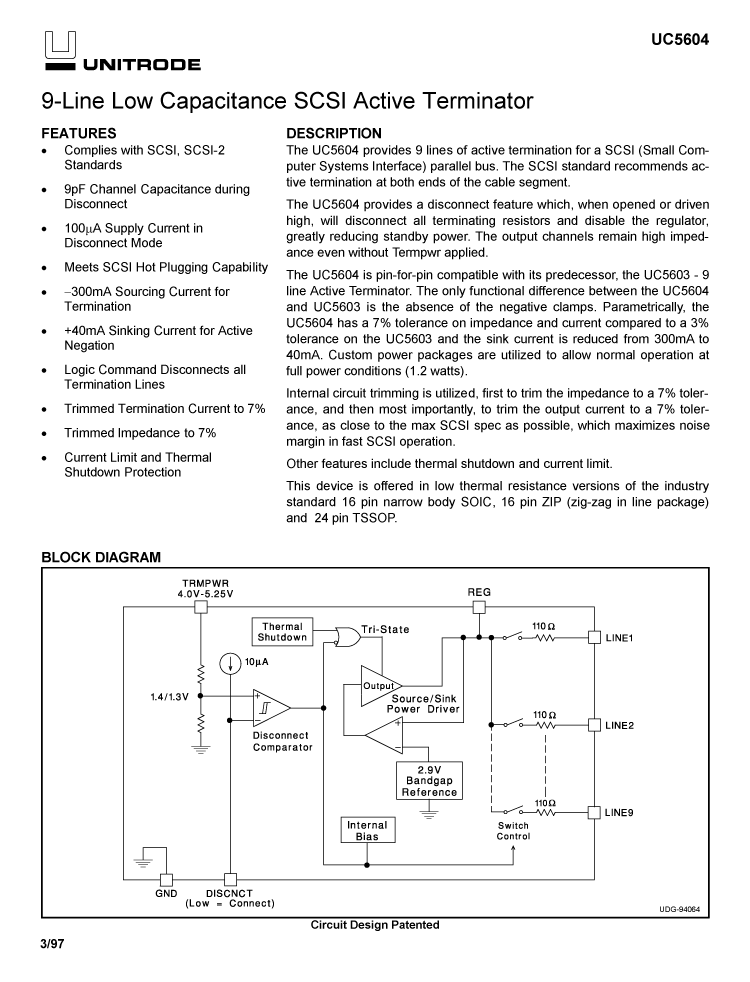 | 9-Line Low Capacitance SCSI Active Terminator |