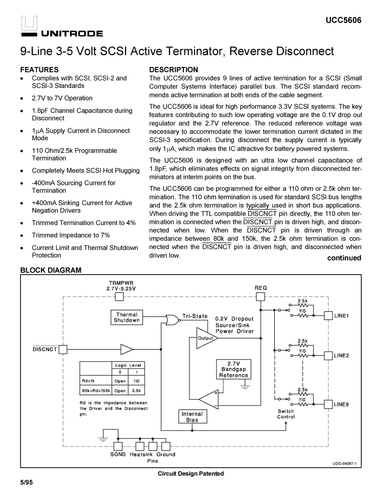 | 9-Line 3-5 Volt SCSI Active Terminator, Reverse Disconnect |