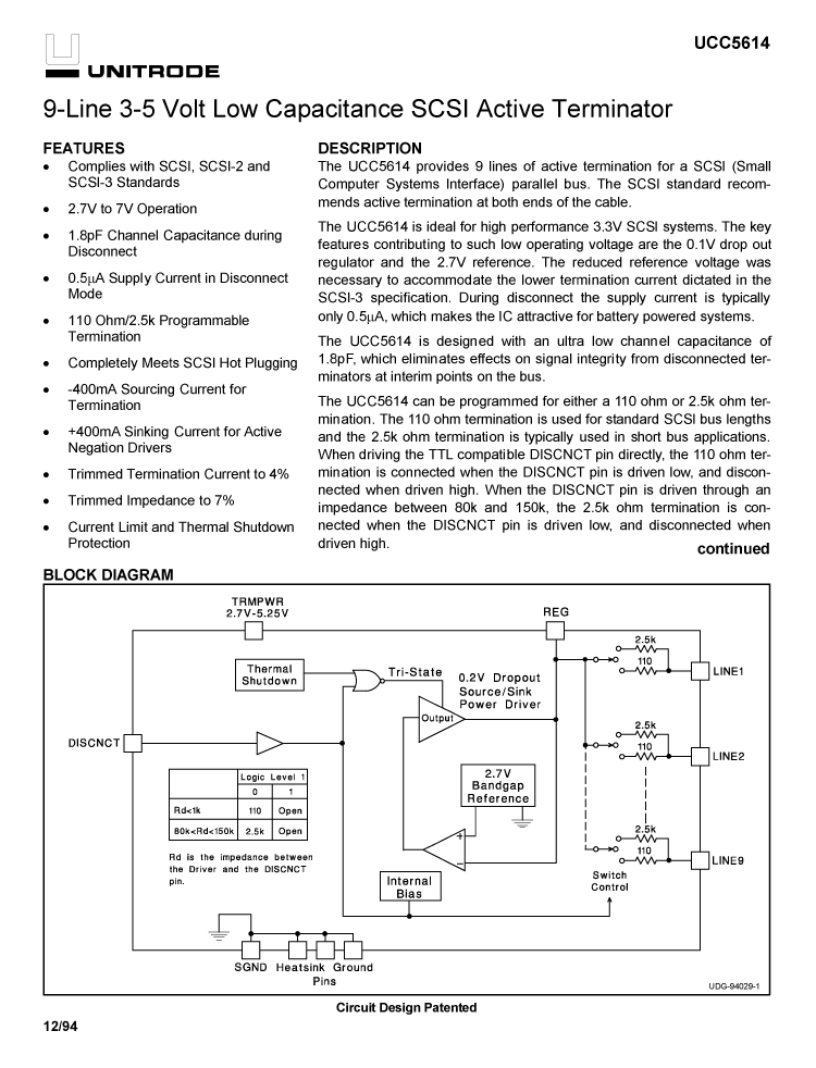 | 9-Line 3-5 Volt Low Capacitance SCSI Active Terminator |